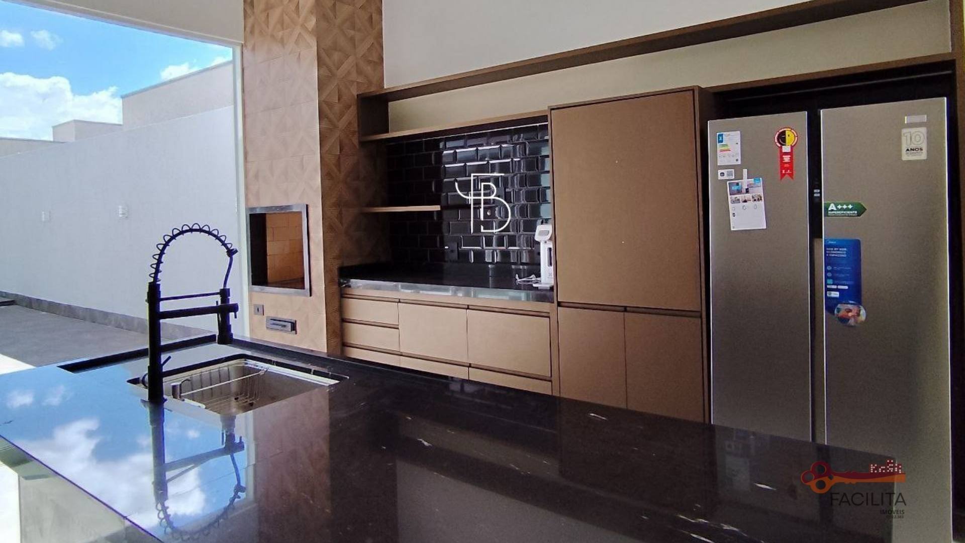 - Cozinha planejada com bancadas em granito e geladeira duplex