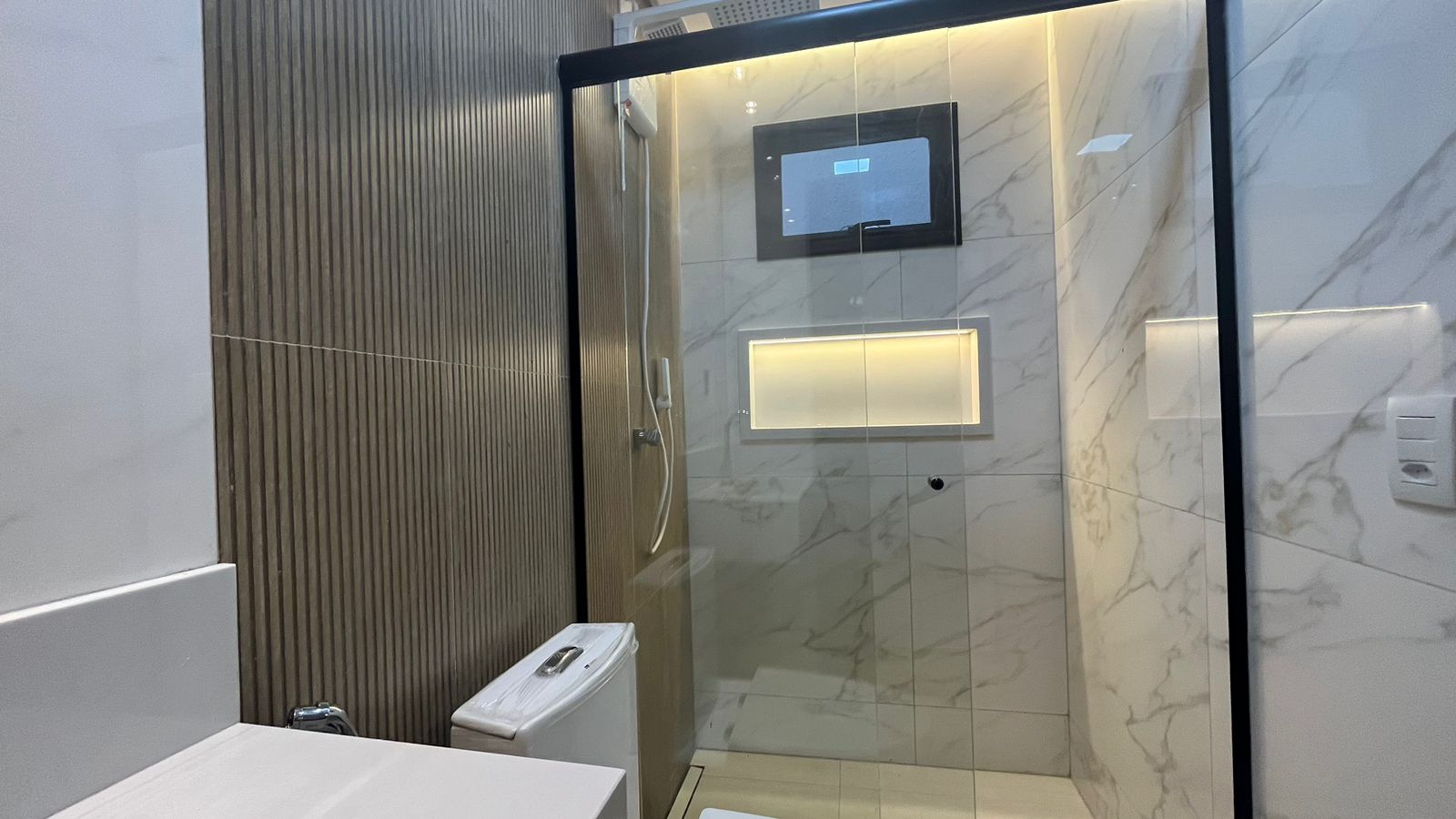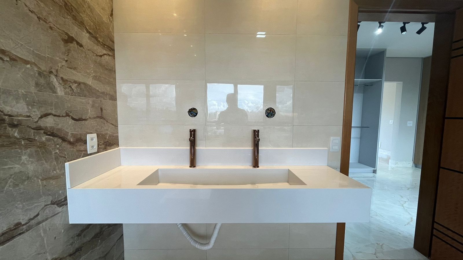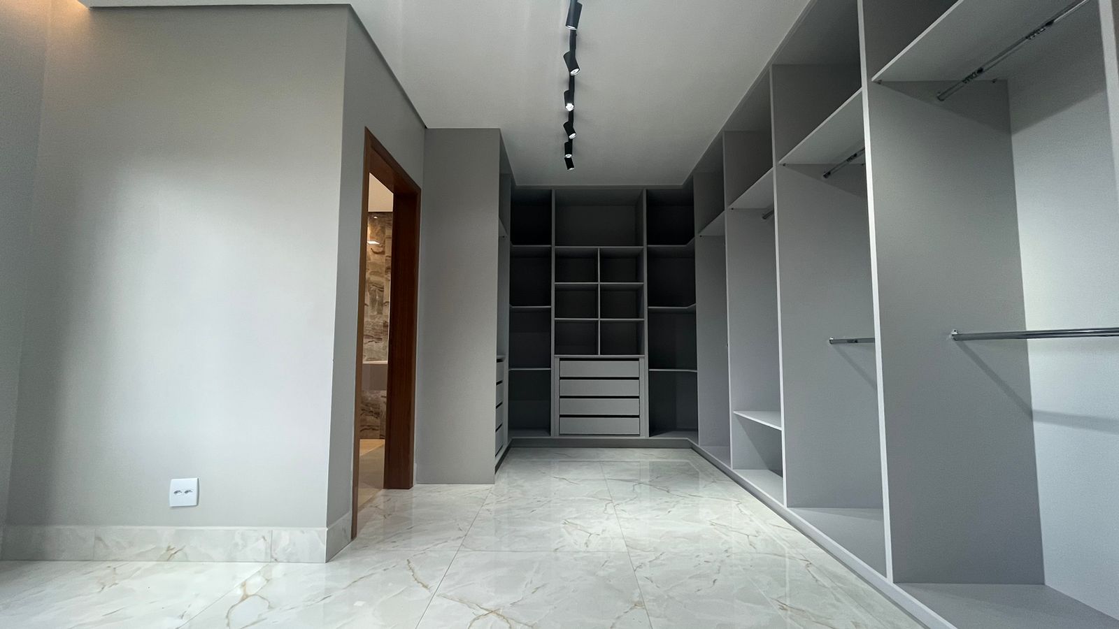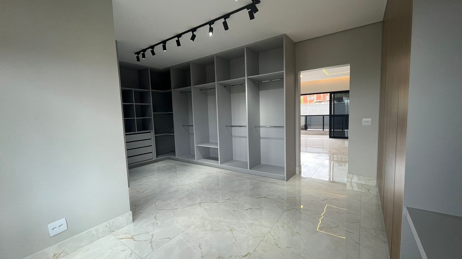 Subindo para o segundo pavimento, a suíte master aguarda para ser seu refúgio particular. Com varanda privativa, closet espaçoso e uma luxuosa banheira de hidromassagem, Um escritório completo complementa esta área, oferecendo um espaço dedicado para suas atividades profissionais.