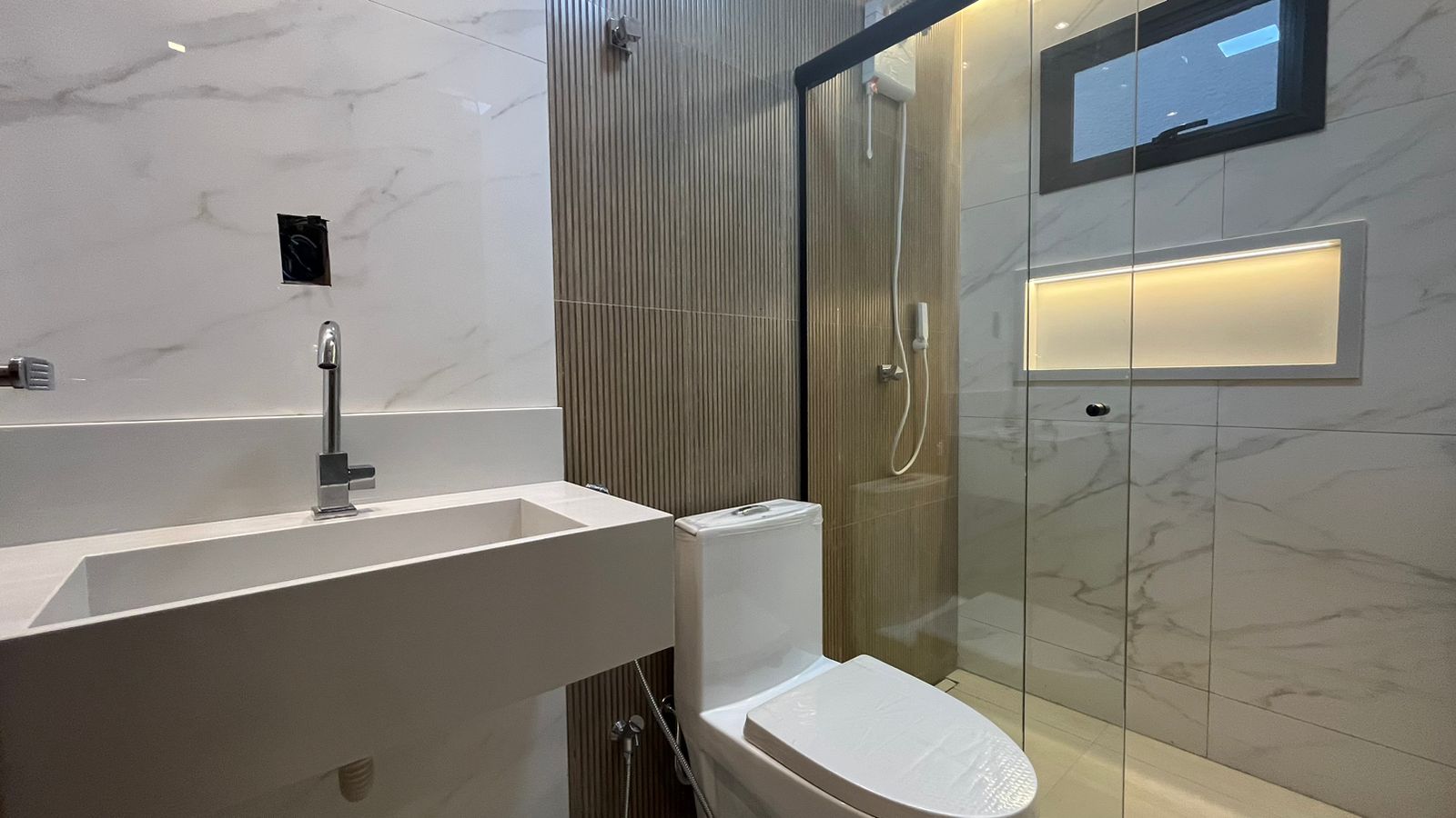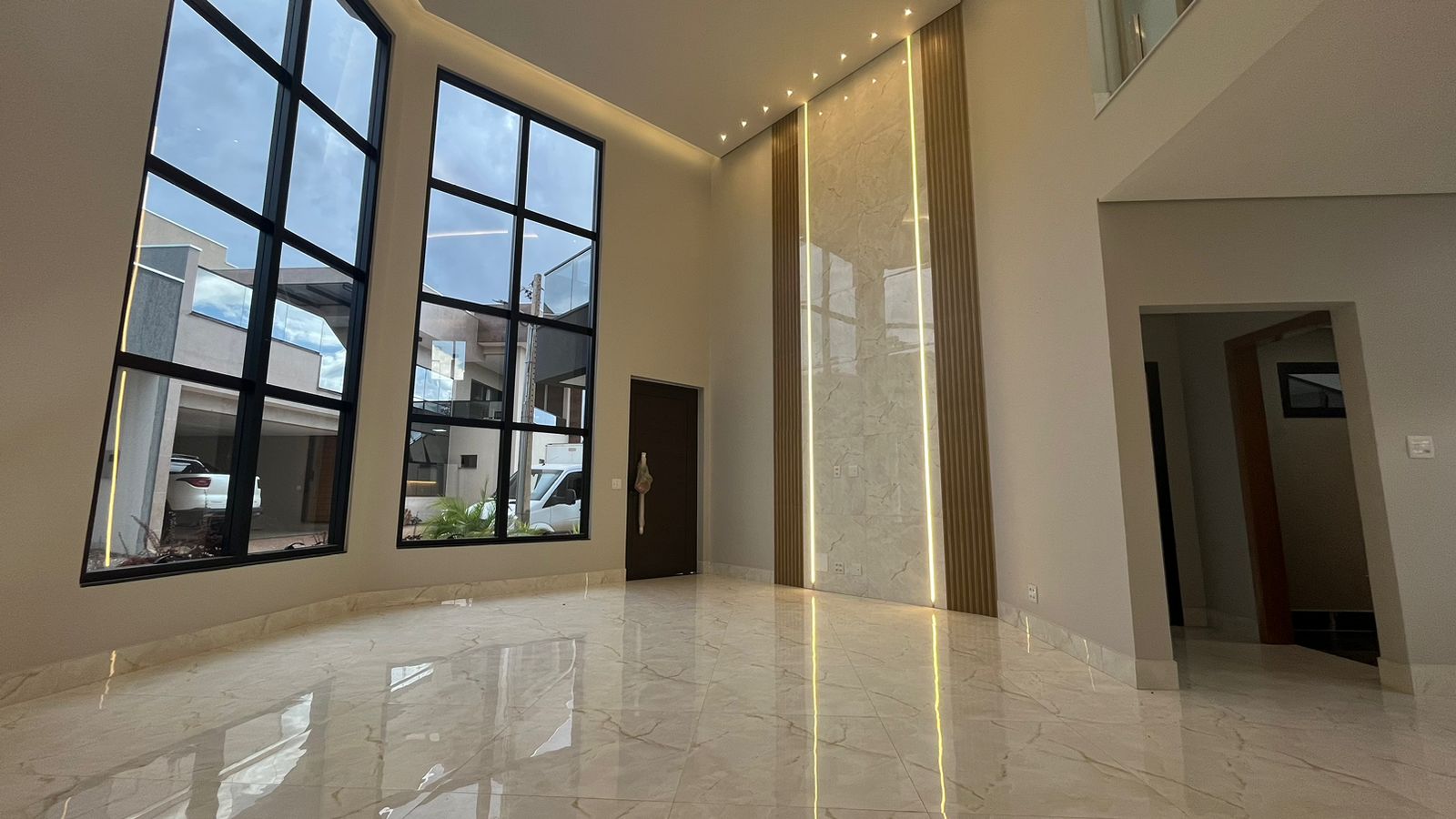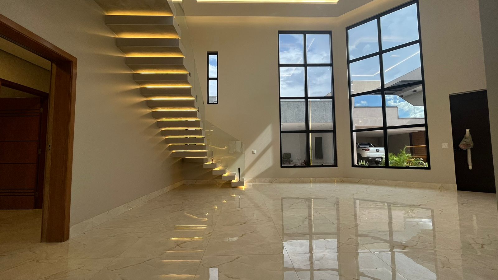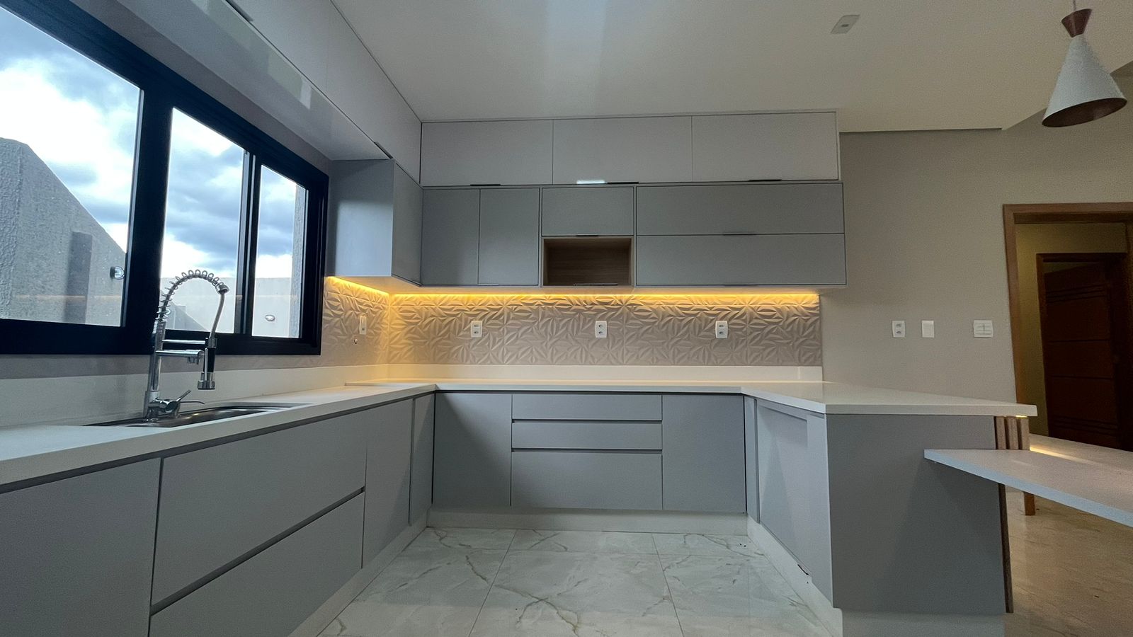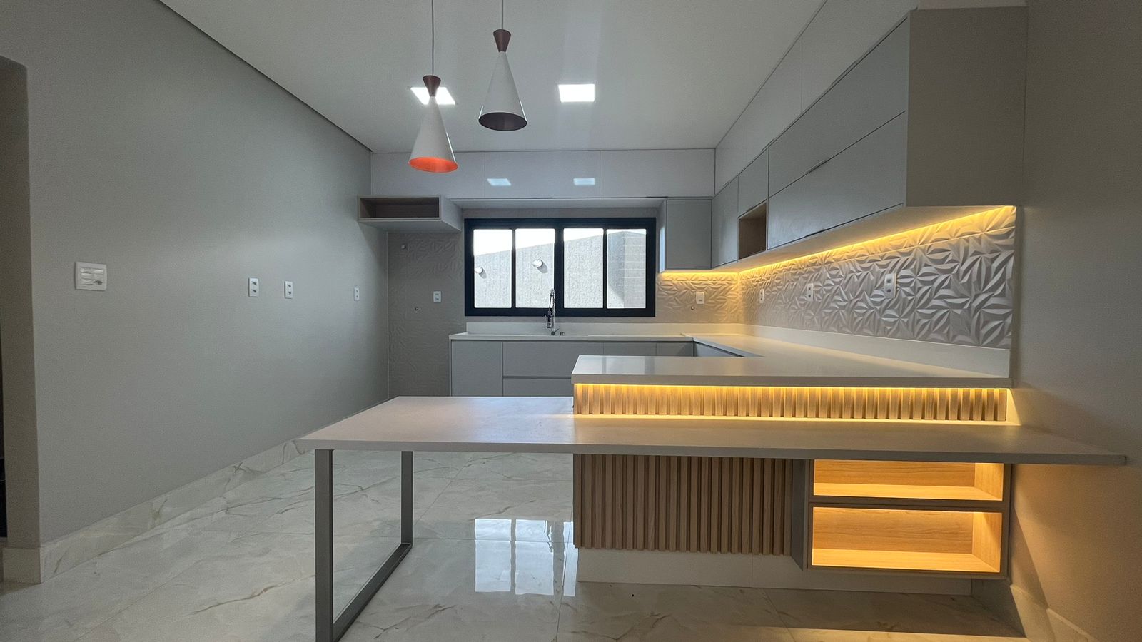 No térreo, três suítes oferecem conforto e privacidade para toda a família, enquanto a sala ampla com pé-direito duplo de 6 metros proporciona um ambiente arejado e convidativo. A cozinha integrada, repleta de armários planejados, torna o preparo das refeições uma experiência prazerosa, enquanto a lavanderia e a área verde oferecem praticidade e serenidade.